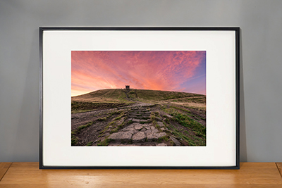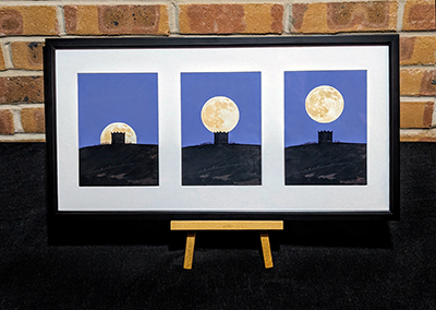Three 7 x 5" prints of the moon rising at different stages above Rivington Pike, mounted in a 20 x 10" frame.